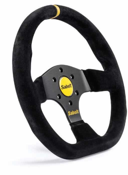 Flat steering wheel. Black suede leather.